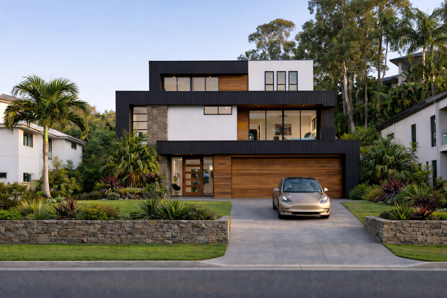 An elevated family home shaped by topography, where outlook, connection and spatial hierarchy are carefully balanced.